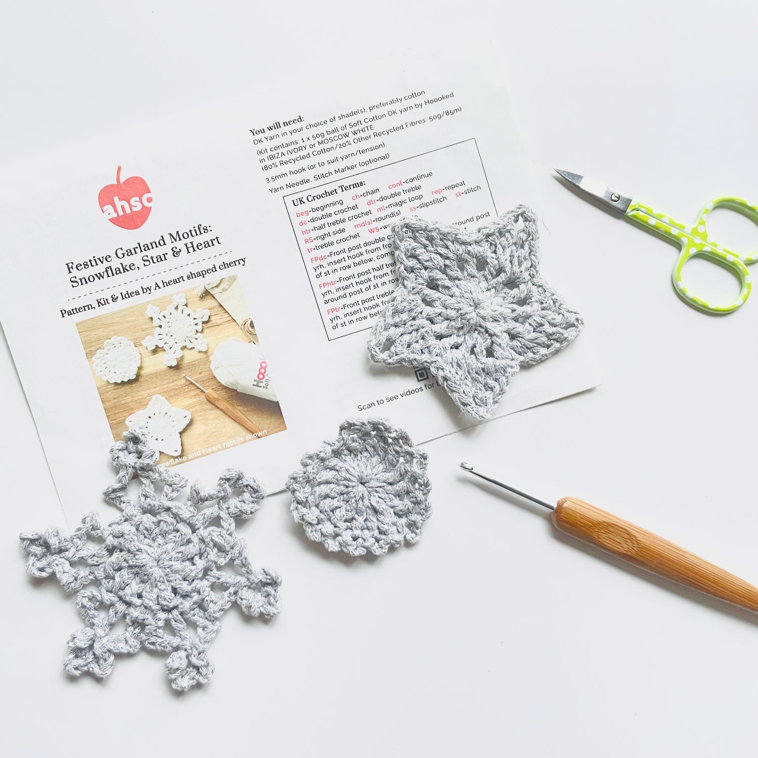 The following videos show how to make the following motifs: the NEW upgraded Snowflake, the Heart (slightly modified) and the Star.